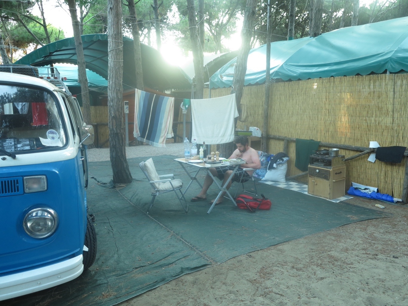 Having amassed an enormous amount of washing over the last two weeks we are now both wishing that we had an Italian grandmother along for the ride. Each of the plots at the beach campsite had a grandmother who spend her days doing one of the following; staring at passers by, peeling a wide variety of vegetables, keeping guard, shouting and tutting at their family members and doing all the family’s washing…one with in depth knowledge of VWs would be a bonus!