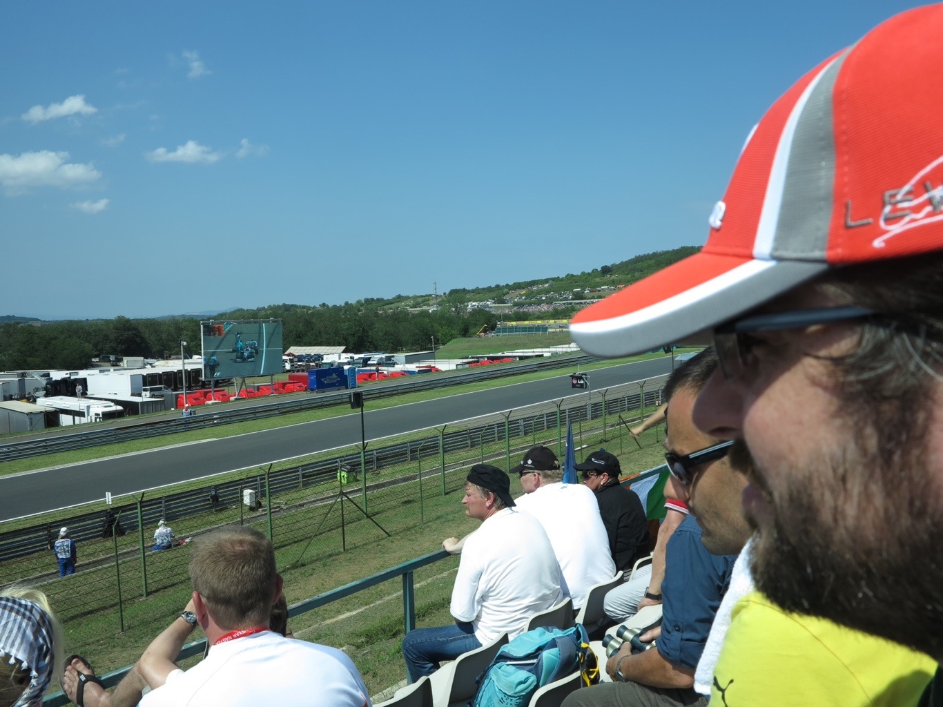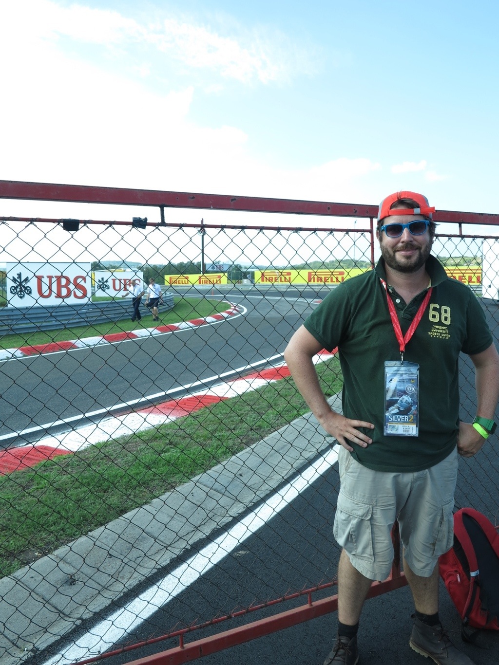 We arrived in site mid morning and managed to find a little plot of grass that was fairly inconspicuous and not too close to too many large groups. We quickly realised what the deal was with camping al la Hungaroring – essentially it was a little like being on a giant Eurovision Stag Party. From 7am every 3.4 seconds you would hear either the sound of a can of beer being opened or a belch of appreciation at the aforementioned beer. The groups of campers were beyond prepared – there were setups which rival peoples houses. With large fridge freezers, full size amplifiers, adult paddling/swimming pools, bbqs and we even saw a full size paella pan – we realised no was taking this weekend by half! There was a very strong Polish, German and Austrian contingent and we actually didn’t see any camping Hungarians. We adapted quickly enough but could never quite get used to the endless music being played at full volume each pitch trying to play louder than their neighbour….needless to say I don’t think I’ll be able to listen to Bin Jovi for quite some time! Dave, referring to the camping as a sausage factory, turned protector after seeing a few stares and a couple of whistles at me, the only female in sight, and he took to walking me everywhere!