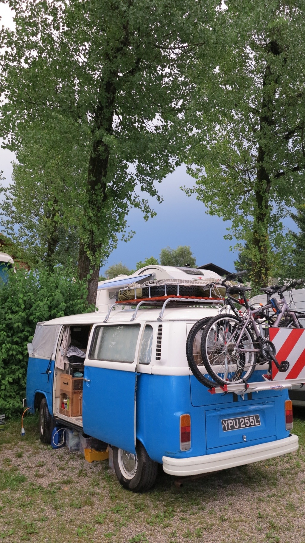The following day, after another thunderstorm, we left the wonderful hospitality of Camping Panorama and headed south in the direction of Slovina. After a day reaching hights of up to 1350 metres and passing through 5 tunnels of around 5miles long we made it to Villach – the very south of Austria. What incredible views we had had along the way (and no we didn’t break into ‘The hills are alive…..!) and we were lucky enough to have picked a campsite right on the shore of a huge lake meaning our final night was set to a stunning back drop.