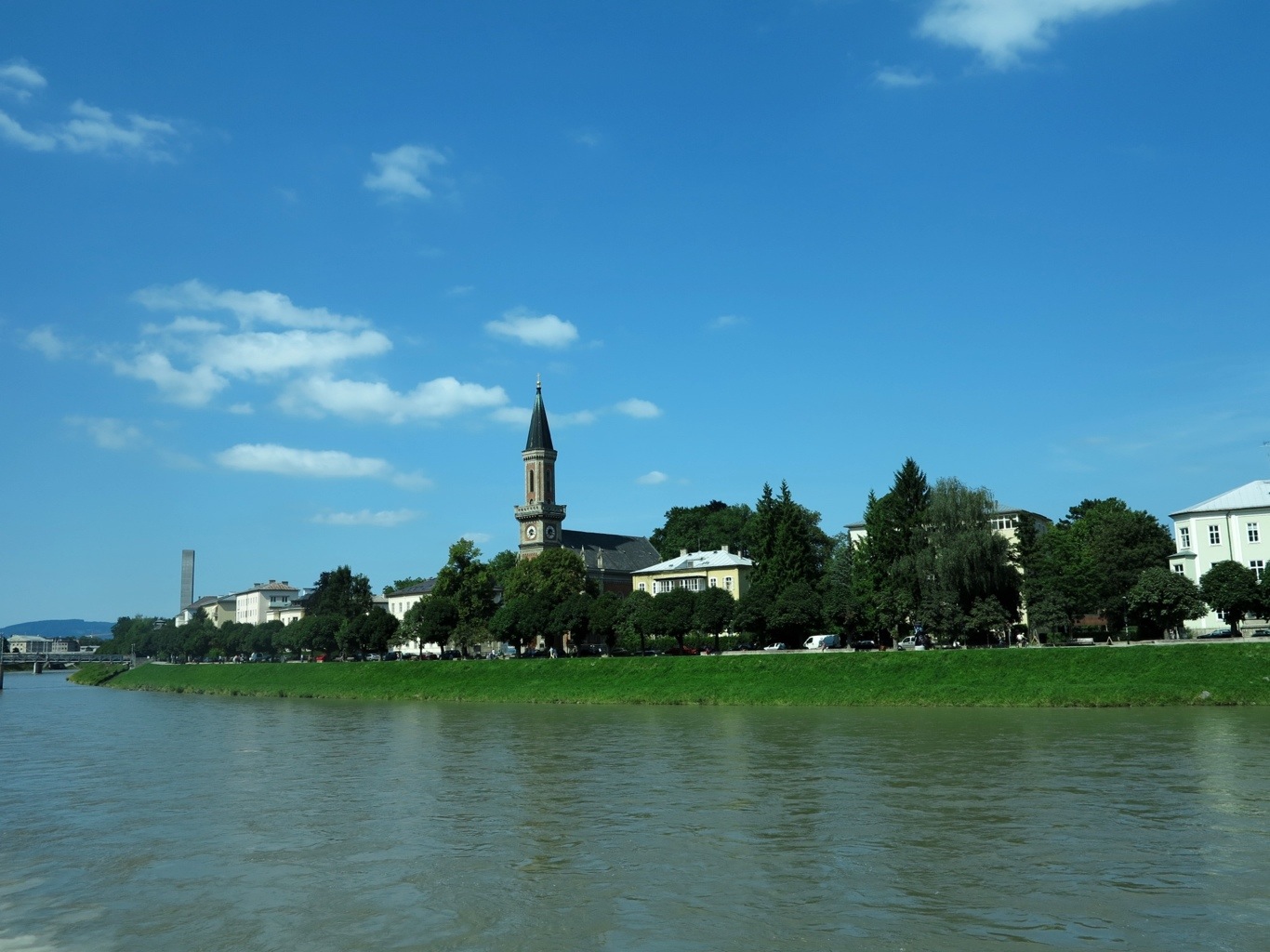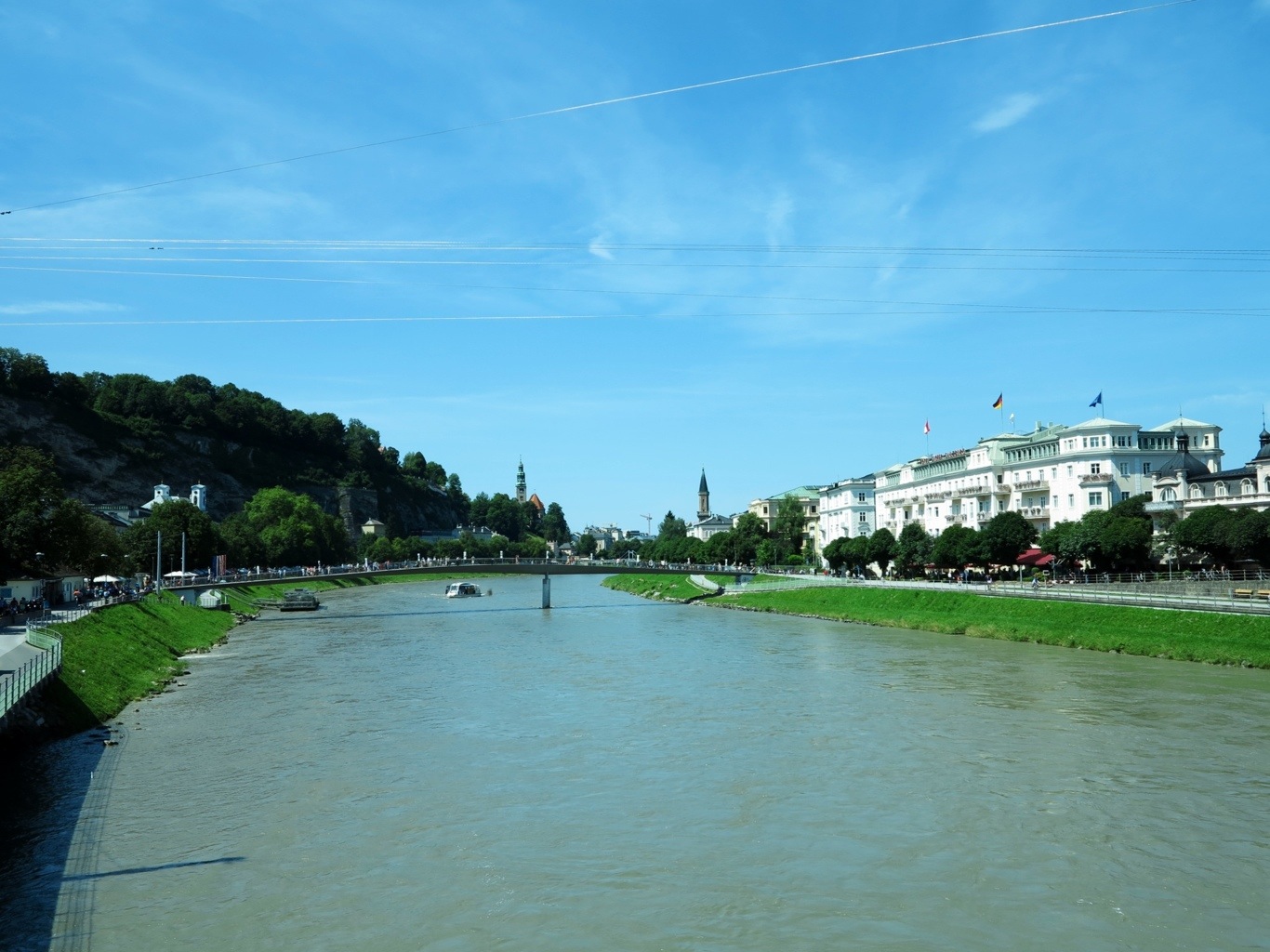 We awoke to beautiful sunshine and hopped back on the bikes for the 4 mile ride travelling along a stream filled with huge fish that lead onto the river and towards the city centre. It was a wonderful way to enter the city for the first time as all of the city centres around the river and the bridges between. There was a market along the river so we parked up the bikes and walked the remaining distance. We got a coffee in a inspiring 1920’s style cafe and made our plan for the day. By this stage I was already completely won over with Salzburg. As Mozart’s home town Dave was very keen to see his birthplace etc. we found this pretty easily but we were met with a £22 entrance fee for us- which with the danger of it just being ‘here is a room where Mozart used to sleep in a bed that may have looked a bit like this’ we decided not to cough up. we instead, again, opted to walk the city and make our own discoveries. We were sad to learn that we had just missed a Mozart concert in the festival hall – we had spent the morning wondering why everyone was so dressed up – we must get better at planning ahead! Salzburg is a beautiful city with very carefull consideration to preserving the look – even the modern part of town maintained the style of the old – and the baroque style is subtly present everywhere. If we were not on such a big trip we would have got stuck in more with the huge array of restaurants, tourists sites, boat trips etc – and seeing as I can imagine the city looks even better in the winter we may have to plan a return trip in a few years time.