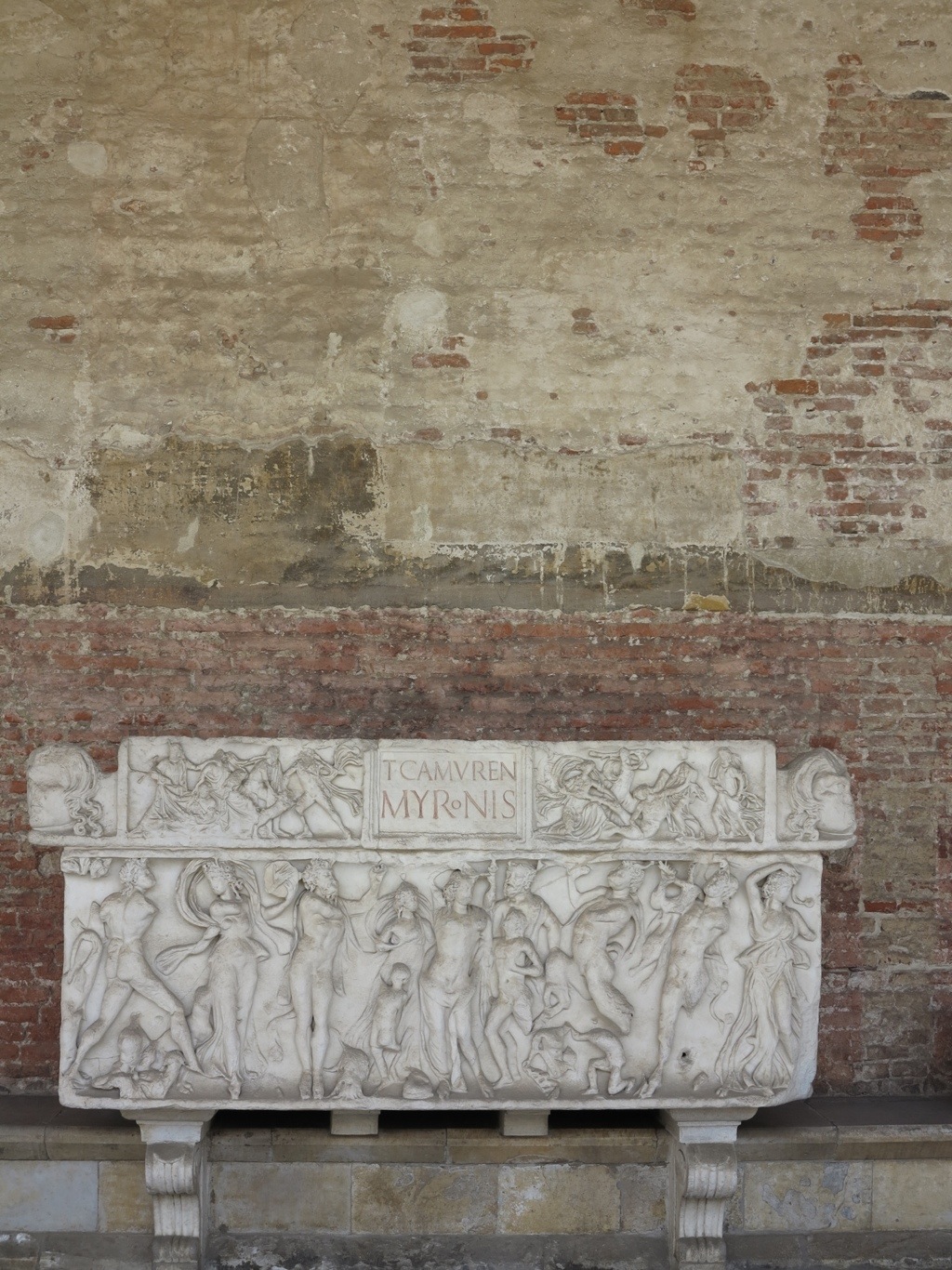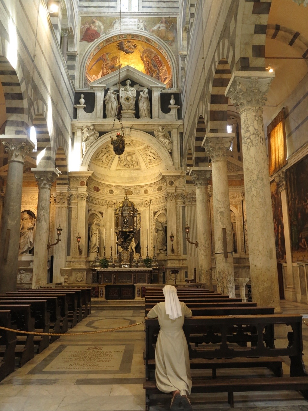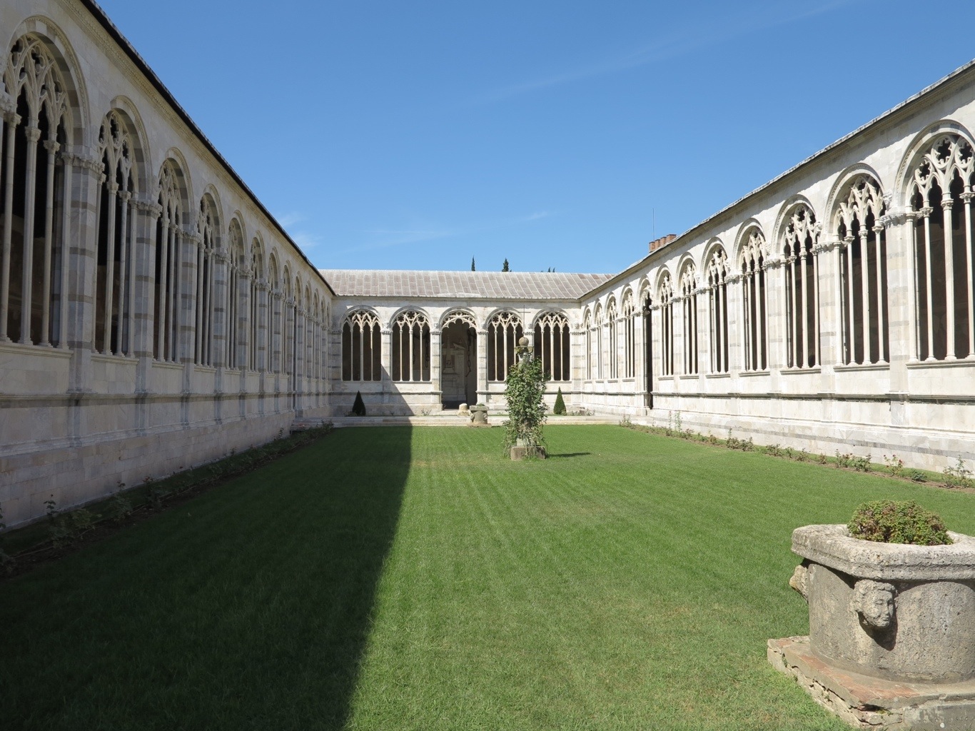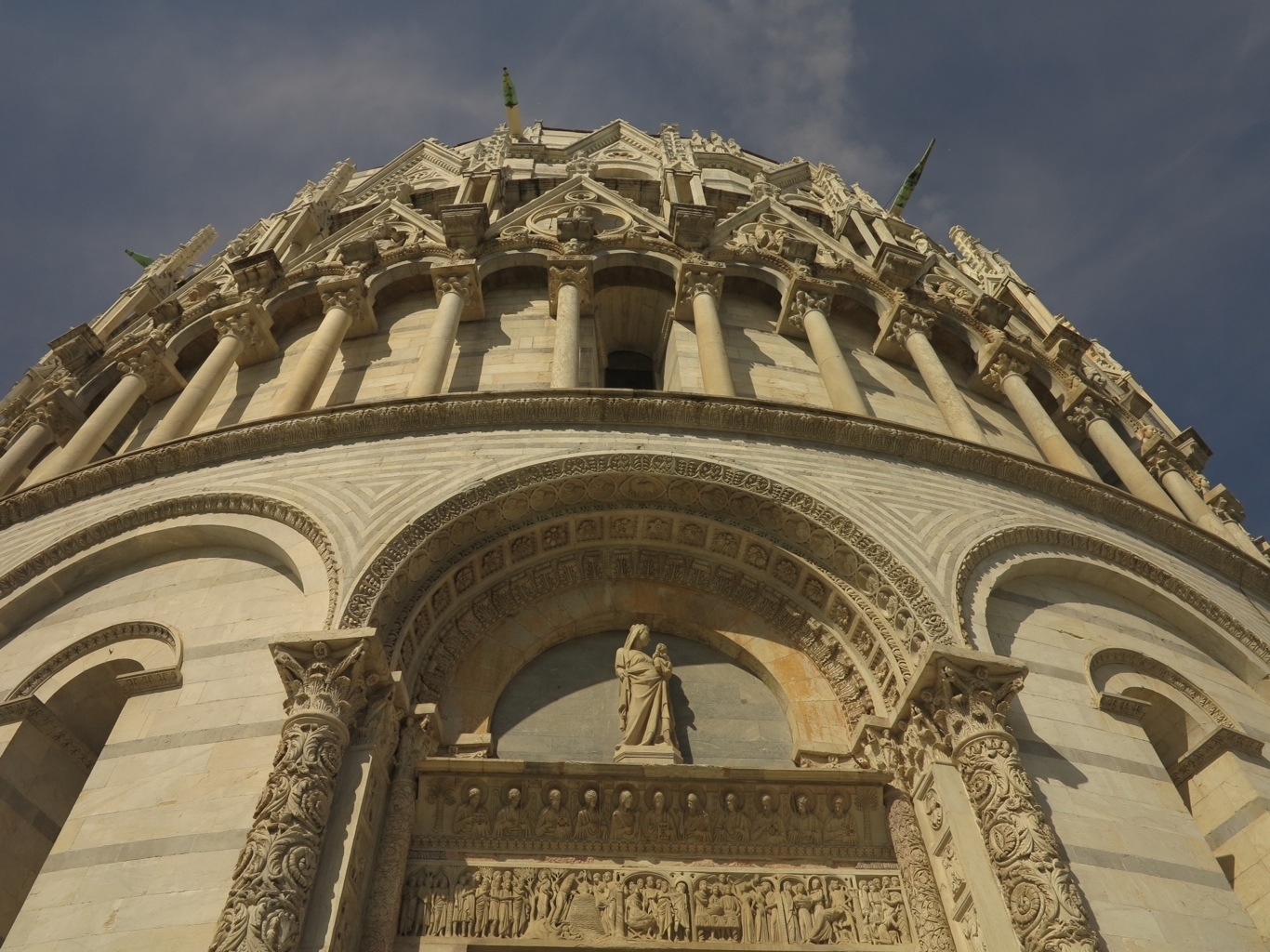 Pisa’s historic walls and the main attraction of the ‘Garden of miracles’ (houses the leaning tower) we’re only a 10 minute walk away which gave our campsite even more brownie points. We walked there in the morning and pushed past the hords of tourists and ‘tat-sellers’ into the city. What a spectacular place. There is something incredibly simple about all of the buildings (the tower, the baptistery, the cemetery and basilica) yet they each are impossible to tear your eyes away from. We spent the morning methodically walking through each section. Dave took the tour to the top of the tower and waved to me down below (me neither favouring the 500steps or the price tag for entry) I was blown away by the cemetery quite aptly described as one of the most beautiful in the world with the floor tombs and stunning statues and wall murals – possibly preferring this to the tower.