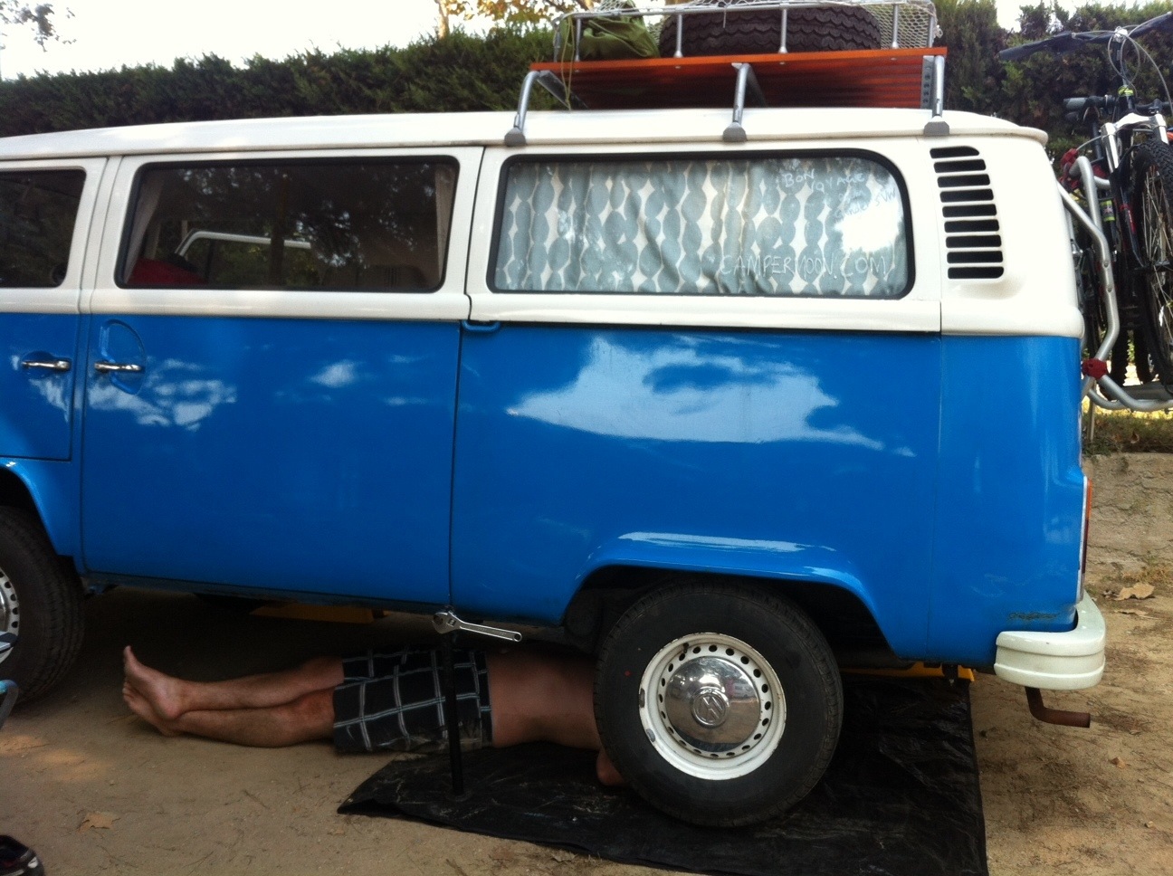 Dave spent some serious time with the underside of the campervan – developing his ever improving mechanic skills. He changed the oil, tightened up the brakes and generally gave her a little bit of an overdue 3000 mile service. I would like to say that I have been able to learn as much as Dave during this trip but sadly, although I have learnt tonnes, the campers mechanics are definitely dave’s territory – am actually terribly proud of his hard work and the attentions he gives to maintenance. My skills are definitely still inside the camper – ie packing, unpacking and trying to keep it nice – really all very 1920’s of us and a little out of character!